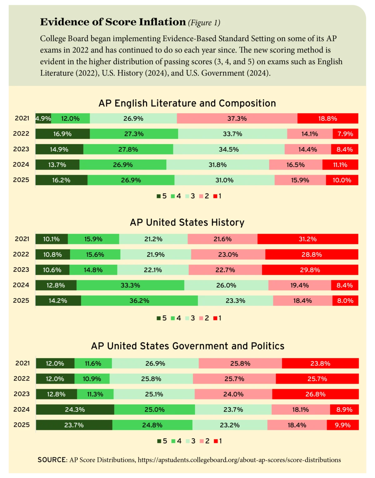 Home Education The Erosion of the Gold Standard: Evidence of Significant Score Inflation in Advanced Placement Exams Under New College Board Grading Policies